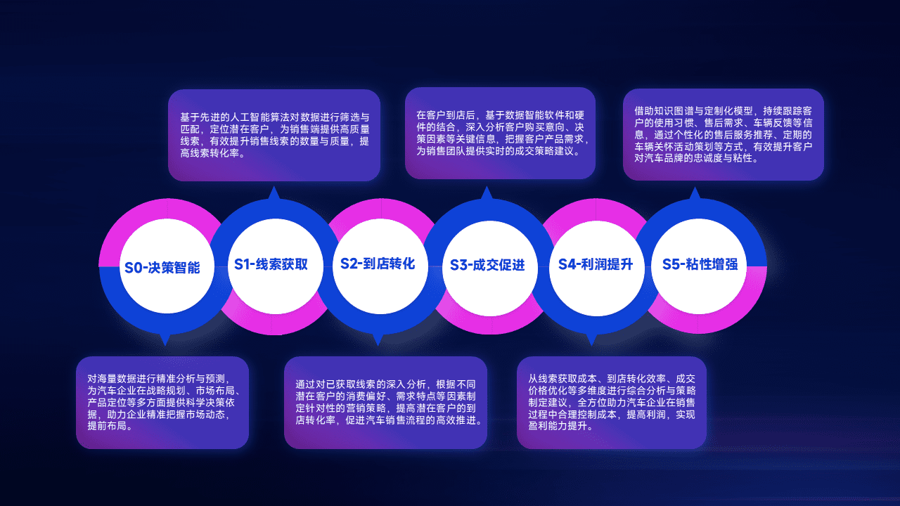 通过拓宽潜在客户来源、、、、优化线索分配并提高到店转化率,,以增强销售效率。。同时,,,利用线索数据不断优化分析模型,,,有效提升转化率,,,,扩大营销影响力。。